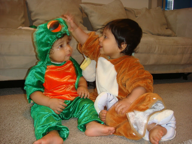 This is extremely over due but better late than never! Here are some pictures of the babies from Halloween 2008. Didu took them Trick-or-Treating!